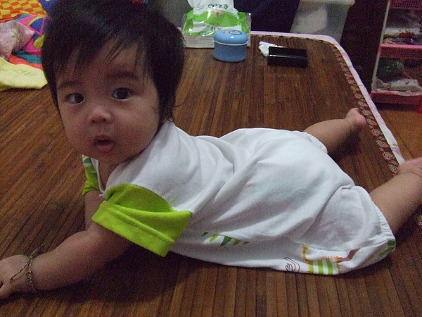 進入第五個月,彤彤已經從原本不太熟練的翻身動作,到昨天終於很輕鬆的一下就翻身過去,手撐起來呢了~又進步囉~妹妹~加油~接下來就是四處學爬,好好擴展自己的新視野囉~